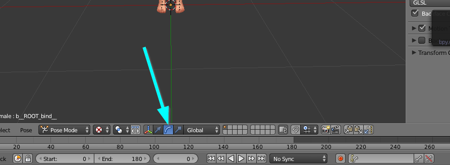 For purposes of this tutorial, we will be using the Rotation Tool, but this is non the only way to rotate bones. To enable the Rotation Tool y'all need to click on the icon showed on the screenshot above. If you don't run across the icon pointed past the arrow, click on the icon on the left, with lines colored in red, blue and green, to brand the 'Rotation Tool' icon visible. To move bones (don't do this) you need to use the 'Translation Tool' which will exist explained later in this tutorial.